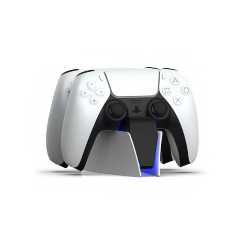 با پایه شارژر دوال سنس میتوانید دو عدد کنترلر DualSense را به صورت همزمان از پورت EXT که مخصوص شارژ سریع دوال سنس است، شارژ کنید. این پایه شارژر طراحی همگن با پلی استیشن 5 دارد و با استفاده از آن، دیگر لازم نیست از پورتهای پلی استیشن 5 برای شارژ کنترلر DualSense استفاده کنید.