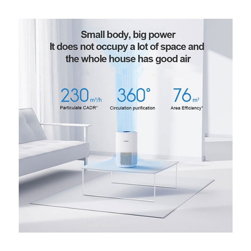 دستگاه تصفیه هوای هوشمند شیائومی 4 کامپکت، هوای تمیز را در جایی که به آن نیاز دارید ارائه میدهد. این یک محصول نوآورانه، به ویژه برای افراد حساس به آلرژی است. همانطور که از نام آن پیداست، به عنوان جمعوجور طراحی شده است. میتوانید برای میز و کف از دستگاه تصفیه هوا استفاده کنید. مجهز به فیلتر 3 در 1 است. ذرات کوچکی به اندازه 0.3 میکرون را به دام میاندازد. اندازه دستگاه تصفیه هوای هوشمند شیائومی 4 کامپکت کوچک است؛ اما ویژگیهای آن بزرگ است. هوای تازه آن، خستگی را از بین میبرد و از سلامت تنفسی خانواده شما محافظت میکند. بی سر و صدا کار میکند، زمانی که دستگاه تصفیه هوا کار میکند میتوانید کار کنید. دستگاه تصفیه هوای هوشمند 4 کامپکت 99.97 درصد ذرات کوچک 0.3 میکرون را به دام میاندازد. دارای فیلتر 3 در 1 برای تصفیه است. میتواند آلایندههای هوای داخل خانه را لایه به لایه از بین ببرد. برخلاف دیگر دستگاههای تصفیه هوای شیائومی که طراحی جعبهای شکل دارند، دستگاه تصفیه هوای هوشمند 4 کامپکت دارای فرم استوانهای و رومیزی است. وزن آن فقط 2.2 کیلوگرم و دارای قطر 220 میلیمتر و ارتفاع 355 میلیمتر است. علاوه بر این، دارای 230 متر مکعب بر ساعت CADR و سنسور PM 2.5 IR است. در حالی که فاقد حسگرهای دما و رطوبت است که در سری 4 تصفیهکننده هوای هوشمند بزرگتر یافت میشود، مدل جمعوجور میتواند بوی باکتریها و آلرژنهای رایج مانند موهای حیوانات خانگی و گرده را فیلتر کند. علاوه بر قابلیت حمل، از مزایای دستگاه تصفیه هوای هوشمند 4 کامپکت، میتوان به میزان نویز و مصرف انرژی اشاره کرد. این پاککننده تنها با حداکثر توان مصرفی 27 وات در مقایسه با نسخه Lite با خروجی 33 وات رتبهبندی شده است. سطح نویز در حالت خواب 20 دسیبل است و در حداکثر تمیز کردن به 50 دسی بل میرسد.